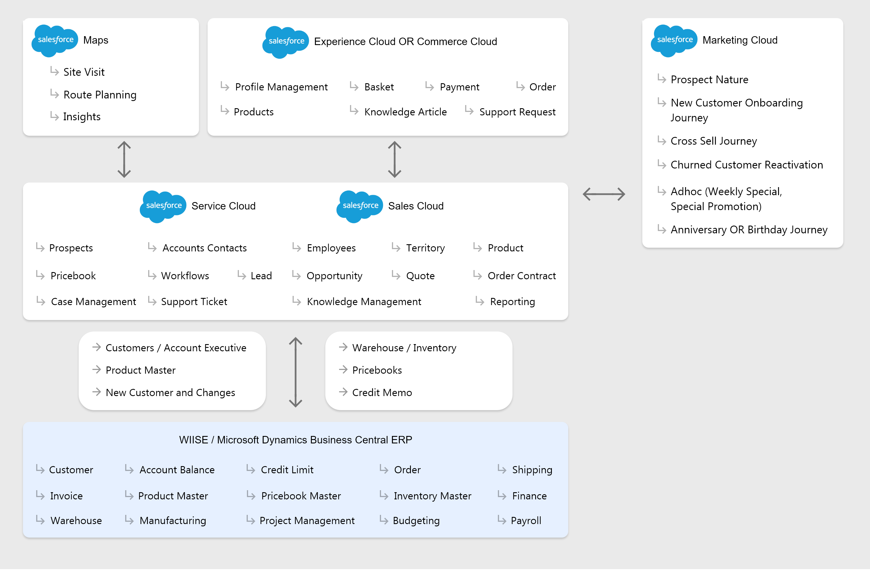 Advancements in Process Efficiency: By capitalizing on the harmonious collaboration between Salesforce’s CRM capabilities and Wiise’s ERP functionalities, you can efficiently refine your end-to-end operations. This collaboration promotes enhanced teamwork across multifaceted departments such as Sales, Marketing, Logistics, Finance, and Management, potentially leading to the following advantageous outcomes: